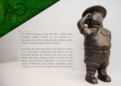 Este escuteiro, na ideia do artesão, “ foi criado, devido à inexistência de uma peça em artesanato que possa levar aos cinco cantos do mundo a imagem de um “Scout”. A ausência de rosto deixa à imaginação de cada um a visualização do “Scout” preferido. As suas formas arredondadas, representativas da boa vontade, generosidade, simpatia e humildade, caracterizam também aquilo que um bom “Scout” deve possuir e transmitir. Mormente, a sua robustez representa a capacidade de todo o “Scout” saber que deve ser modelo, exemplo, como elemento na sociedade.”