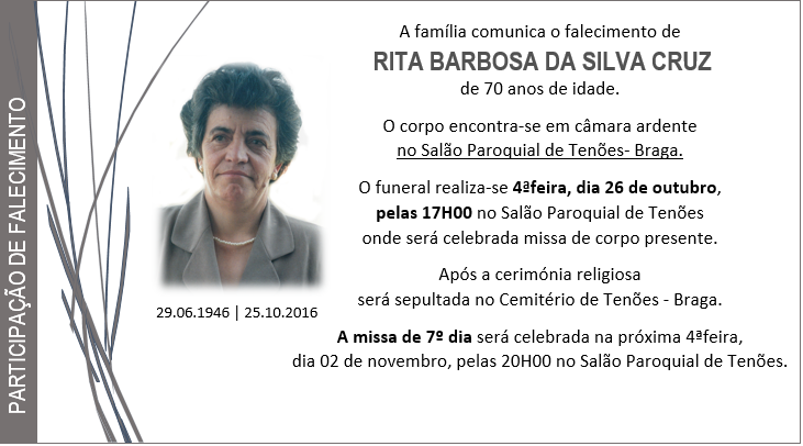 Falecimento de D. Rita Barbosa da Silva Cruz